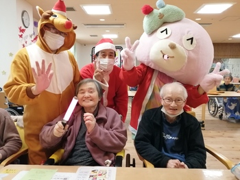 人気の”こじゅもん”も参加し一緒に写真撮影を行いました。利用者の皆さまから「かわいいね」「一緒に写真が撮れてうれしい」といった声が聞かれました。カメラの前では自然と笑顔があふれ、思い出に残るひとときとなりました。