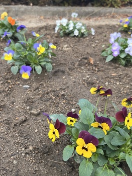 まずはビオラを植えました。今はまだ小さなビオラですが、これから少しずつ株が広がり、寒い季節にも可愛らしい花をたくさん咲かせてくれます。